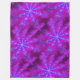 Cette belle couverture en toison présente un design de starburst fuchsia, violet et bleu basé sur l'ensemble fractal Mandelbrot. Une fractale est un motif sans fin basé sur une équation mathématique - cette fractale particulière ressemble beaucoup à des flocons de neige ou des cristaux de glace.