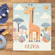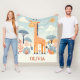 Cette mignonne couverture bébé personnalisée présente une girafe fantaisiste et adorable dans un bel environnement de savane.