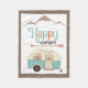 Art numérique mignon avec texte "Happy Camper", flèche de style Boho, silhouette de montagne et remorque de voyage RV de style rétro