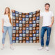 Des icônes de café blanc amusantes avec de longues ombres sur fond bleu, gris et marron bordées de noir. Parmi les icônes figurent un broyeur à café, une tasse, des haricots à café, une cafetière turque, une cafetière, un sac de café, une machine à expresso, et plus encore.