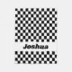 La couverture en toison personnalisée cool a un drapeau en damier noir et blanc sur l'avant. Personnalisez-le en changeant le nom à ce que vous voulez. Cela ferait un grand cadeau pour les amateurs de voitures de course dans votre vie. Veuillez consulter nos autres options de vérification personnalisées.