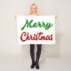 Couverture en polaire avec Joyeux Noël en texte vert et rouge 3D. Disponible en plusieurs tailles.