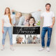 Couverture commémorative de collage photo personnalisée. Une façon parfaite de rendre hommage à votre être cher. Le design présente un script de typographie ''pour toujours dans nos coeurs'', 3 photos et un nom.