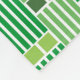 Cette couverture en toison moyenne a une conception moderne du milieu du siècle de lignes verticales vertes avec des rectangles au-dessus, répétée sur la conception.