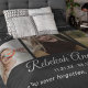 Confort, chaleur et souvenirs affectueux enveloppés d'un seul. Découvrez l'unique et élégante couverture funéraire. Une tenue de conservation vraiment spéciale, cette couverture vous permet d'immortaliser vos souvenirs chers avec l'inclusion de trois photos, du texte personnalisé et d'un message personnel. Faites-le vraiment le vôtre ou un cadeau réfléchi pour une personne aimée qui a perdu en personnalisant les styles de police, la taille, la couleur et l'arrière - plan.