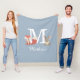 Cute couverture en toison bleu avec un bébé renard de forêt boisée et lapin lapin lapin assis de chaque côté du monogramme et du nom. Conçu par Thisisnotme©