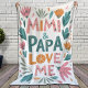 Surprenez vos proches avec la couverture florale Mimi et Papa Love Me Fleece Blanket et faites-leur savoir combien ils sont chéris. Parfait pour baigner avec des êtres chers ou comme pièce décorative dans n'importe quelle pièce, cette couverture est un doux rappel du lien spécial entre les enfants et leur mimi, grand-mère, ou maman.
