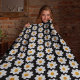 Couverture Polaire Modèle floral dahlia blanc sur noir