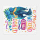 Design coloré et dynamique, avec un dragon avec un livre ouvert et des roses bleus. Le texte coloré dit : "Mon week-end est complet". Ce design est disponible sur une grande variété de produits.