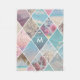 Couverture molle aux nuances de bleu et de rose comportant un motif été-orienté de diamant et un monogramme.