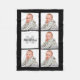Couverture faite sur commande personnalisée d'ouatine de monogramme de collage de photo. Ajoutez facilement vos photos carrées personnalisées de la coutume 5 à cette couverture de modèle de souvenir, horizontale et verticale d'ouatine avec une frontière noire élégante. Les photos peuvent être un mélange des photos de famille mémorables des enfants et d'autres membres de la famille. Placez une initiale simple de monogramme de lettre et durez ou prénom. Créez votre propre marque mémorable de votre famille, d'enfants, de jour du mariage, d'anniversaire, de Noël ou de toute autre occasion spéciale. Photos de haute qualité polychromes avec l'arrière - plan de couleur solide. préservez vos souvenirs aimés dans le style. La conception est disponible sur trois tailles des couvertures d'ouatine. Choisissez votre taille du menu du côté droit avant de passer votre commande.