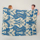Un motif sans couture présente des motifs floraux stylisés dans les tons beige et crème contre un riche arrière - plan bleu. Le design symétrique évoque les influences Art Déco avec ses formes géométriques et ses détails complexes.