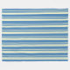 Cette couverture en toison bleu clair et crème a des rayures verticales. Les bandes varient en largeur.