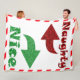 Cette couverture de vacances festive et amusante présente un thème de Noël mignon. Le mot "Naughty" est imprimé dans une police de style parties scintillant rouge fantaisiste, avec une flèche correspondante pointant vers la gauche. Le mot "Nice" est imprimé dans une police de parties scintillant verte avec une flèche correspondante pointant à droite. La bordure est ornée d'un motif de sucre de canne à la menthe poivrée rayée rouge et blanc. Montrez si vous pensez avoir fini sur la partie coquine ou jolie de la liste Père Noël.