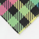 en vichy motif avec rose, vert, bleu, jaune et noir.