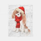 Amusez-vous à réchauffer la saison au coin du feu ou jetez-vous sur le canapé. Un chien Cavalier roi Charles Spaniel dans un chapeau de Père Noël et écharpe rouge sur un mot d'art arrière - plan pour le décor de la maison de vacances de l'amoureux des chiens.