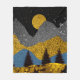 Paysage montagnard Abstrait dans des tons audacieux d'or, noir et bleu avec un lever de lune et des oiseaux.