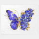 Bijoux, bleu, saphir, papillon aux fleurs pétillantes avec aile décorée de bleu, fleurs précieuses avec feuilles d'or sur arrière - plan blanc.