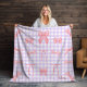 Cette couverture fleurie est conçue avec un look esthétique coquette adorable avec des arcs roses, inspirée du balletcore et de l'esthétique vintage. Cette couverture fleurie combine un arrière - plan en vichy violet pastel avec des arcs et des rubans roses. Il s'agit d'un complément parfait pour toutes les chambres pour filles. Customisez avec notre sans votre nom dans le coin inférieur droit.