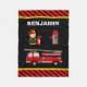 Cute couverture à thème du moteur à incendie avec un beau camion de pompier et de mignons éléments d'extinction d'incendie. Customisez-le avec le nom de votre enfant.