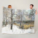 Artiste de Zolotareva. aquarelle sur soie - dessin manuel; pont de pierre à travers la rivière dans le village.Vue d'un pont enneigé dans les bois.