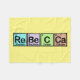 Le nom Rebecca est orthographié ici utilisant les carrés colorés qui représentent des éléments de la table périodique. Vous pouvez customiser ce cadeau. Déplacez la conception autour, changez la couleur d'arrière - plan ou le style, ajoutent le texte ou les images -- faites-lui vos propres !