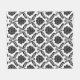 A vintage style decorative damask surface pattern influenced by rococo classical design in black detail on a white background.