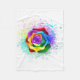 Grand rose fleuri avec pétales arc-en-ciel sur arrière - plan blanc, peint sur des éclaboussures de peinture colorée et lumineuse. 3d