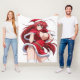Vivid anime style character in a festive Santa outfit with white fur trim, red dress, and thigh-high boots. Bold color contrast and playful pose target anime cosplay and holiday merch lovers
