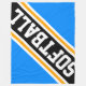Ce design sportif présente du texte de SOFTBALL athlétique à l'intérieur mis en surbrillance de larges bandes de course en diagonale noir, blanc et jaune doré contre un arrière - plan bleu vif. Les premières et les dernières lettres du mot "softball" s'écartent des bords de conception avec un effet de bannière dynamique.