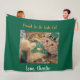 Celebrate St Patrick's Day, laughing! Enjoy this Leprechaun Humor Cat Image Blanket, cute cat image dressed as leprechaun, generative creation, and name. Customizable. Special gift for cat lovers and their cats.