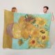 Sunflowers (1889) Vincent van Gogh. Encore la vie sur un arrière - plan bleu. Un bouquet de tournesols lumineux trône dans un vase. Reproduction d'oeuvres d'art célèbres dans le domaine public.