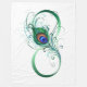 Le symbole de l'infinity with a bright, green, artistic peacock feather on a white background. Tattoo style.