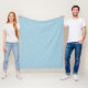 "Two sections showing the front and back of a blanket. The front features a blue and white polka dot pattern, while the back is plain white."