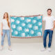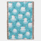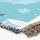 Playful polar bears in Santa hats float on icy blue seas surrounded by igloos, fish, and snowflakes. A cool Christmas favorite.