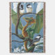 Petit dragon vert dans un arbre en hiver en essayant de se faire des amis avec des poulets.