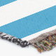 Rayures bleues et blanches larges audacieuses de chaise longue sur les articles à la maison pour évoquer des souvenirs du bord de la mer.