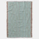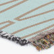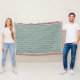 Cette couverture de lancer a un design géométrique de sorte d'ovales plats répétant à travers le design en marron sur un champ de bleu pâle.