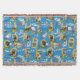 Lettres majuscules A B C D E F G H I J...les animaux domestiques et les outils scolaires contre le motif de répétition bleu ciel