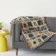 Earthy geometric pattern blanket inspired by tribal mudcloth textiles, featuring hand-painted rectangles, diamonds, and triangles in charcoal black and terracotta on a textured beige background. A warm boho design ideal for rustic décor lovers, artisan style fans, and anyone drawn to earthy geometric aesthetics.