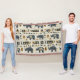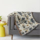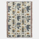 Bold tribal rhino pattern blanket featuring distressed black rhinoceros silhouettes paired with geometric mudcloth-style motifs in warm tan and charcoal on a textured beige background. A rugged, earthy design ideal for safari enthusiasts, boho decor lovers, and wildlife-inspired style fans.