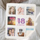 Un cadeau pour le 18ème anniversaire d'une fille (ou tout âge), célébrant sa vie avec un collage de 8 de vos photos. Modèles pour un nom, 18 ans et une date. Date de naissance ou date d'anniversaire. Lettres de couleur rose et violet. Arrière - plan de couleur blanche.