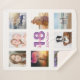 Couverture Sherpa Anniversaire photo collage blanc nom pourpre