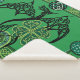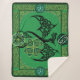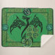 Dragon noir tribal avec ailes de travail de noeud celtique vert. Des nuances de noeud vert et celtique travaillent tout derrière et autour du dragon et du trèfle à quatre feuilles.