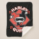 Regardez Chibi Harley Quinn alors qu'elle fait les éclaboussures devant une toile de fond en losange à pois rouges avec son nom écrit autour d'elle.