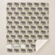 Plutôt couverture sherpa gris et beige avec silhouettes d'éléphant gris et un graphisme ruban avec votre nom personnalisé en écriture grise.