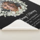 Personalized memorial photo blankets offer a comforting and heartfelt way to honor the life of a loved one. This custom "In Loving Memory" blanket design features a centered photo framed by a delicate watercolor eucalyptus and white floral wreath, set against a rich black background for a timeless and elegant tribute. Below the portrait, customizable name, dates, and a touching remembrance quote add a meaningful personal touch that brings warmth and emotional significance to the piece. Ideal as a sympathy gift, keepsake, or display at a celebration of life or funeral service, this Sherpa blanket provides comfort while preserving cherished memories in a visually stunning way. The calming botanical elements and minimalist layout create a modern yet respectful aesthetic suitable for any memorial setting. Whether draped over a chair, displayed during a service, or kept as a lasting memento at home, this custom memorial blanket serves as a beautiful way to keep a loved one’s memory close.