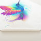 Bright, iridescent, exotic flying hummingbird on white background, painted over with multicolor, watercolor paint. Rainbow hummingbird.