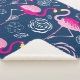 Motif graphique de flamants roses sur un arrière - plan bleu foncé Des flamants roses brillants se détachent contre un arrière - plan bleu foncé. Valse flamants roses sur une scène d'art bleu profond. illustration, sans soudure, décoration, nature, jardin, noir, feuille, silhouette, vacances, rose, dessin, oiseaux, belle, forme, nouvelle, saison, décoration, exotique, flamants, surface