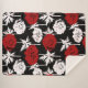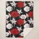 Couverture Sherpa Fleurs rouges, blanches sur le noir.